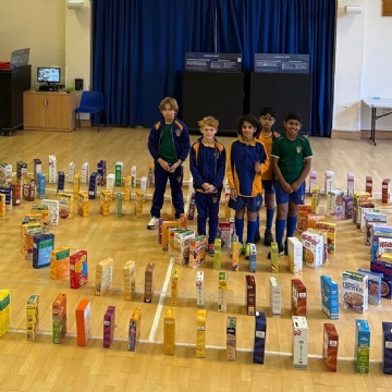 This year’s Harvest Festival celebrations at Loyola were made all the more special thanks to the incredible generosity of our boys and their families. Throughout the year, we collect food donations to support those in need in our local community, with key collection times at Easter, through our Easter Egg Appeal, and most recently with our Cereal Box Domino Challenge.